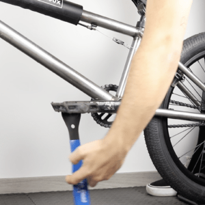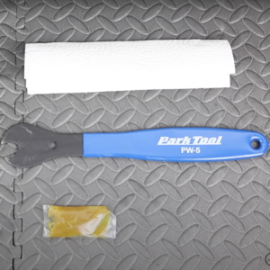 - Tourner dans le sens inverse des aiguilles d’une montre la pédale de droite avec la clef à pédales de 15 mm