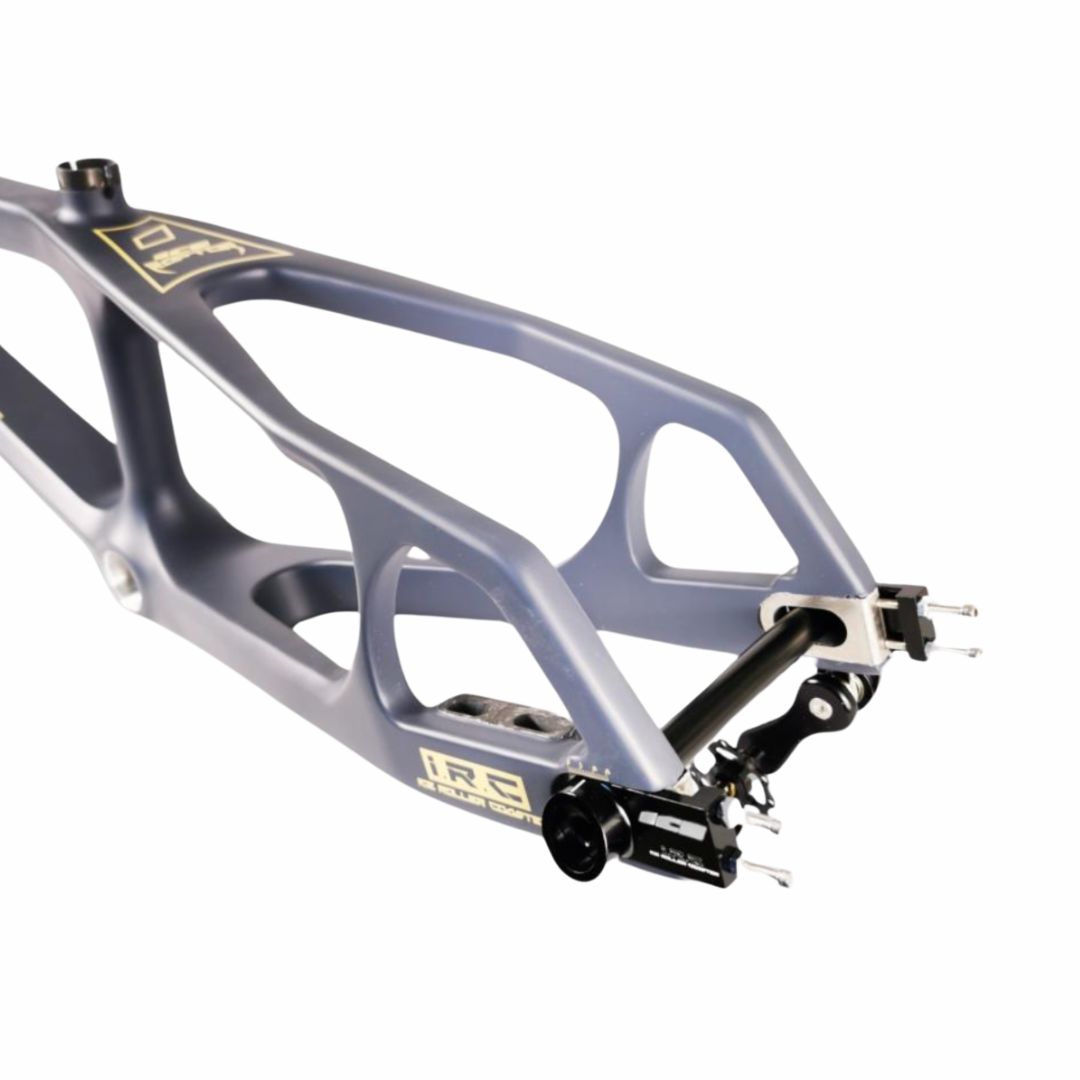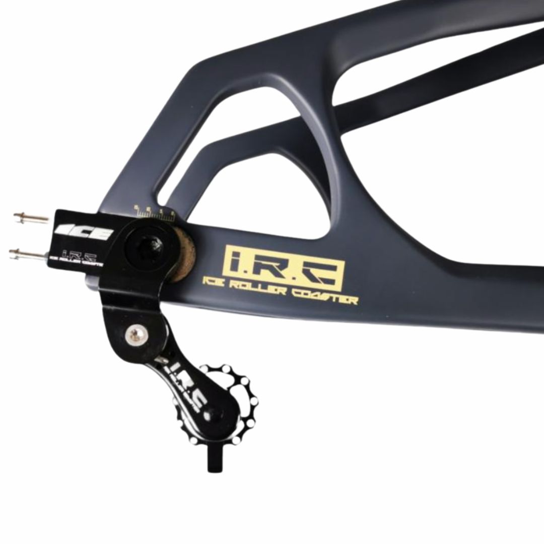 - Kit cadre vendu avec axe + tendeurs de chaîne IRC ‘’Ice Roller Coaster’’ et axe arrière traversant en Ø15mm.
