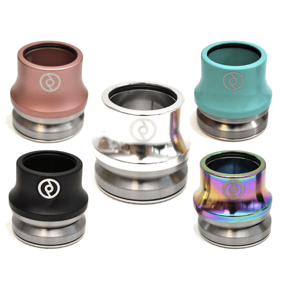 Le jeu de direction intégré Primo signature de Stevie Churchill qui dispose de roulements intégrés et un capot usiné CNC en aluminium avec logos gravés au laser et un joint torique en caoutchouc.