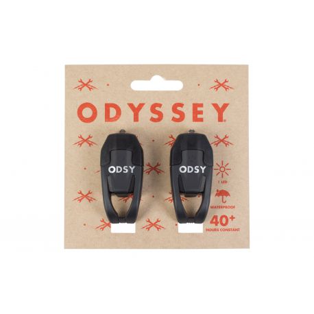 ODYSSEY vous propose un kit d’éclairage, lumières LED à adapter sur guidon ou tige de selle pour être vu, devant et derrière. Facile à installer et à enlever !