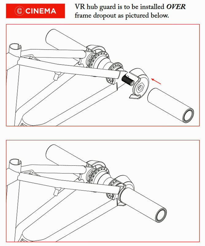 Le protège-moyeu Cinema VR (uniVersal Rear) est moulé par injection à partir d’un composite de nylon ultra durable et à glissement rapide. Conçu pour fonctionner avec autant de combinaisons différentes de moyeu et de cadre arrière que possible, le Guard VR recouvre le côté driver ou le côté non-driver de votre moyeu arrière et le protège des grinds. Installez simplement PAR DESSUS la patte du cadre, sans remplacer une pièce du moyeu et sans avoir à espacer votre cadre.