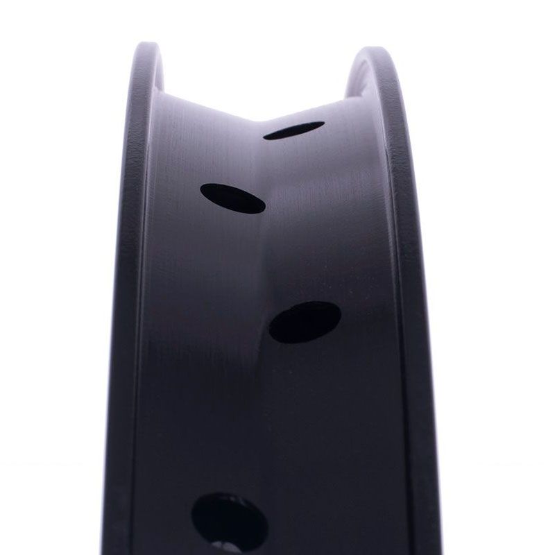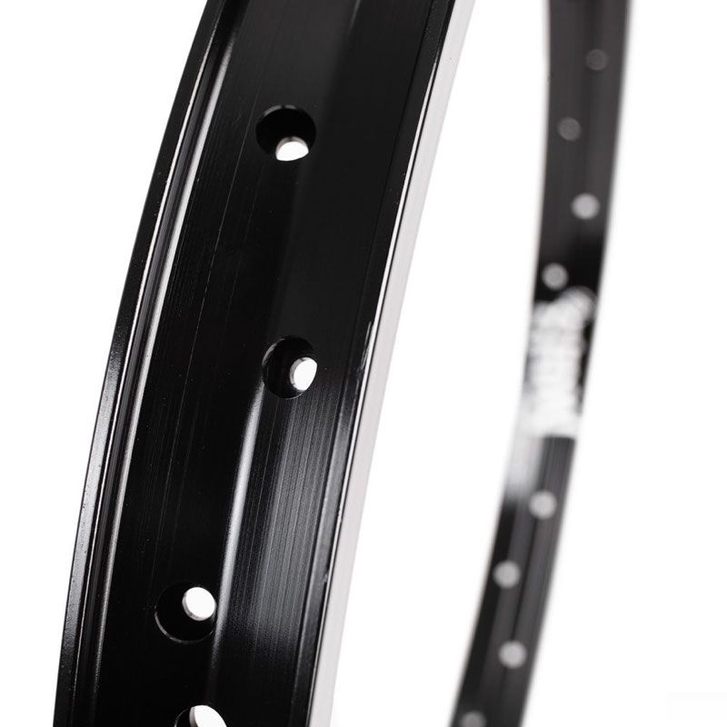 En effet la jante est très rigide, aussi, le fait que les trous des rayons sont au centre de la jante (et avec un épaisseur supplémentaire) permet de répartir l’effort sur toute la largeur de la jante plutôt que sur les bords seulement sur les jantes classiques. Et les rayons alignés ne se dé-serrent pas (même système que sur les motocross).