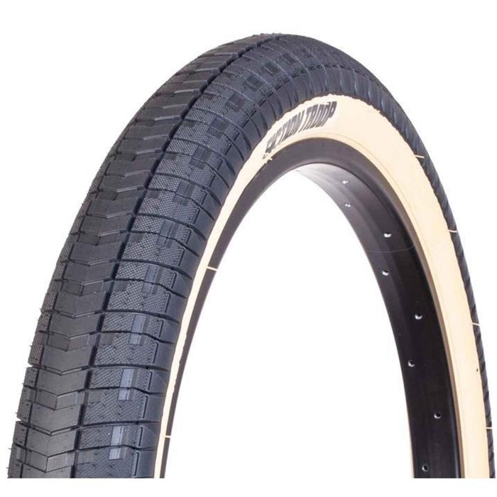 Le pneu STOLEN FICTION Troop 22 » x 2.30″ est un pneu polyvalent adapté à différentes pratiques du bmx (Dirt,street,park). Excellent grip en virage et faible résistance au roulement pour pouvoir prendre de la vitesse facilement. Vendu à l’unité