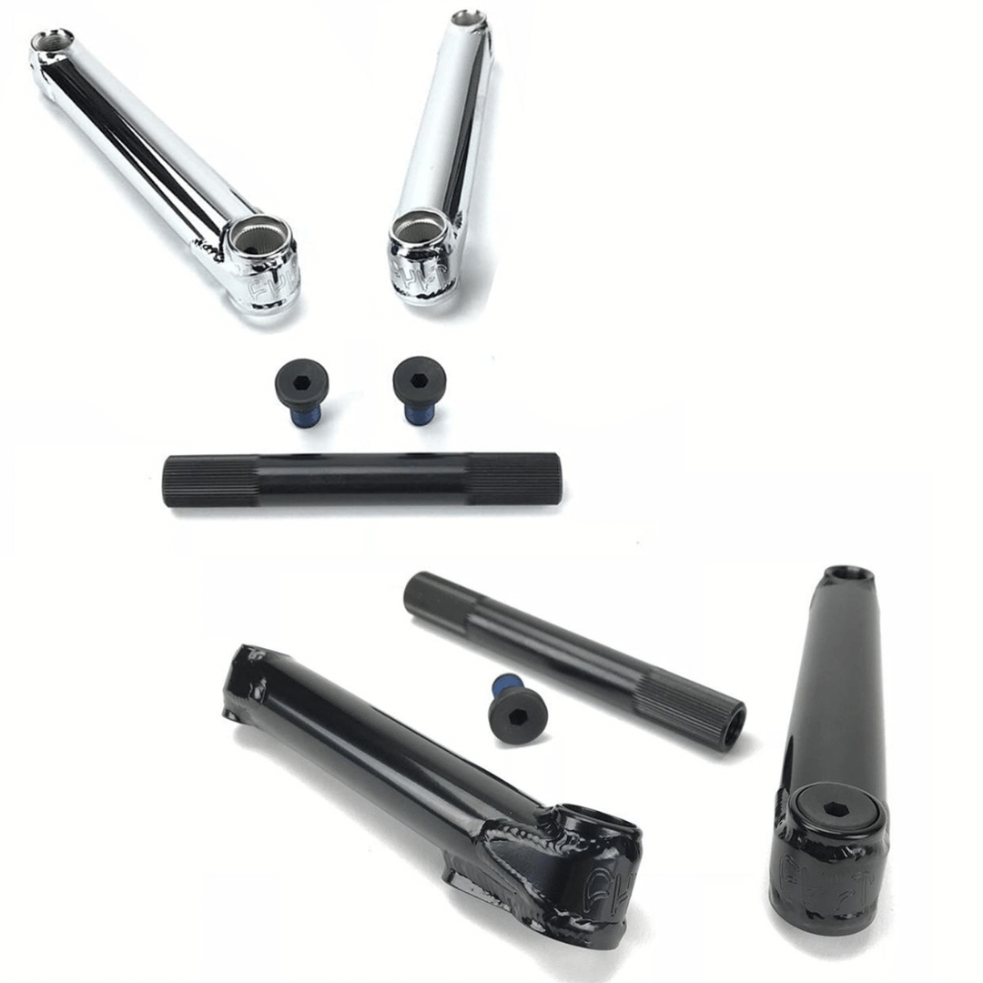 Pédalier BMX CULT CREW Juvi 3 pièces, axe 19mm 48 cannelures, version Short 140mm, idéal pour BMX 16/18 pouces et flat adulte. Outil de montage inclus.