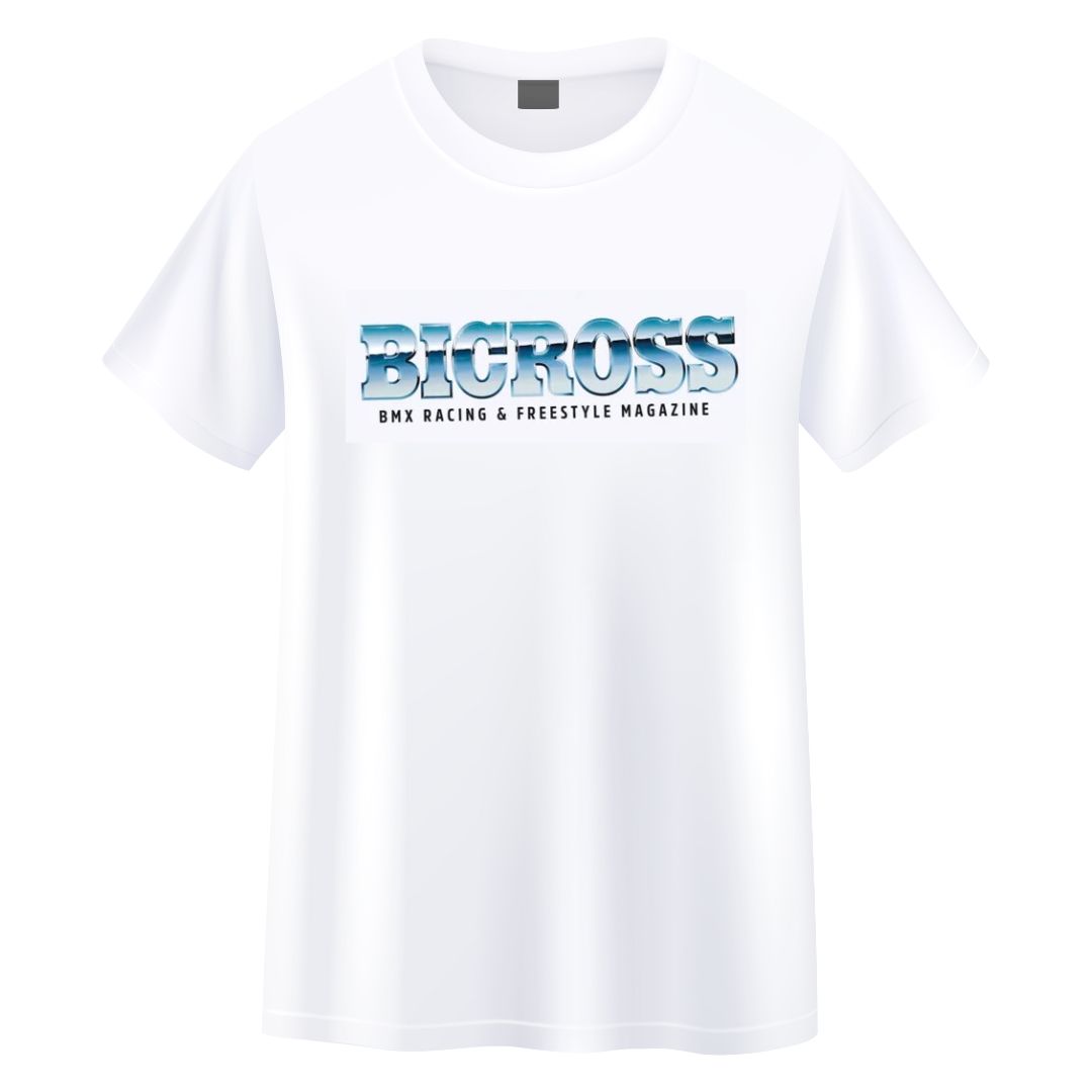 T-shirt BICROSS magazine 2024 Blanc – Taille S, M, L, XL (taille un peu petit), 100% organic vegan cotton.